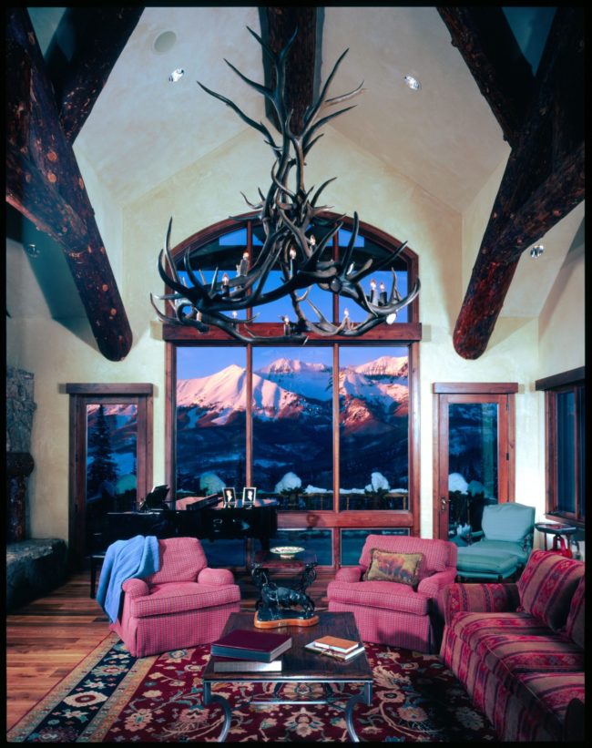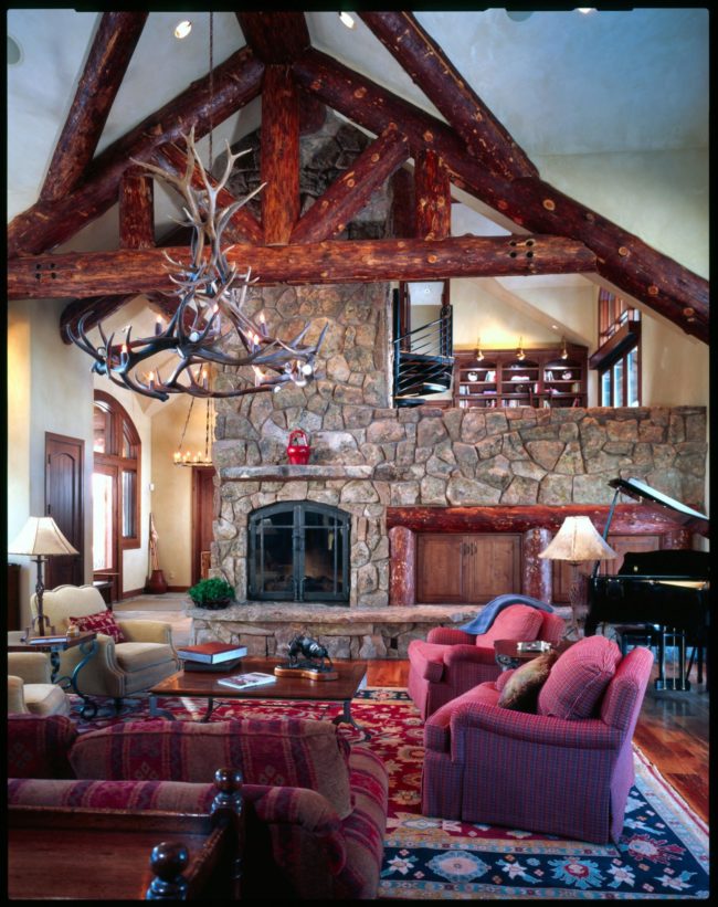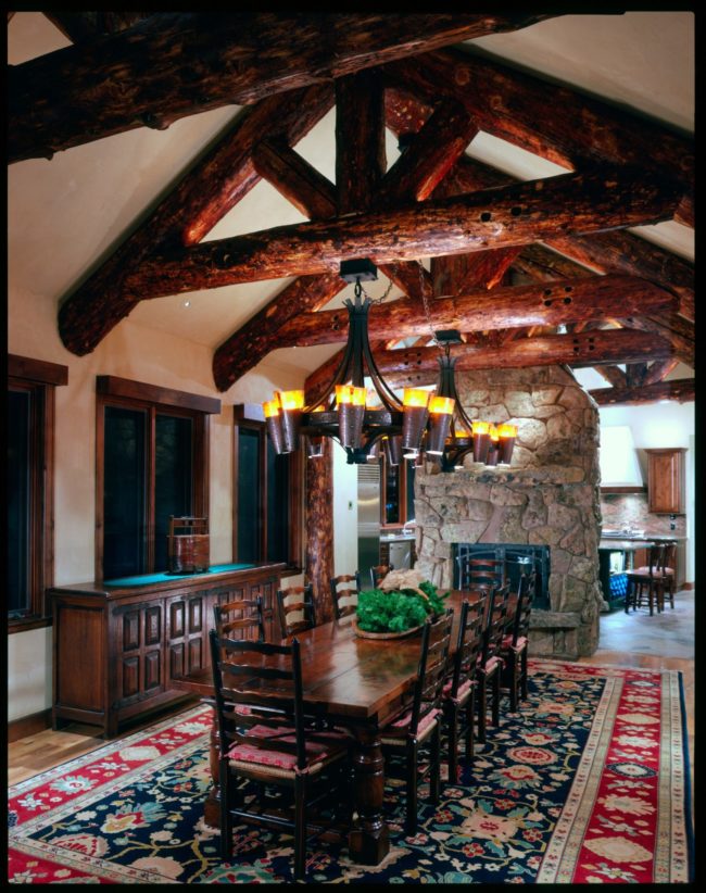 Sitting atop a small knoll, this 5,600 sq. ft. home features extensive use of logs to create a classic mountain lodge. The placement of the home takes full advantage of the double views from the Great Room promoting a sense of being surrounded by nature.